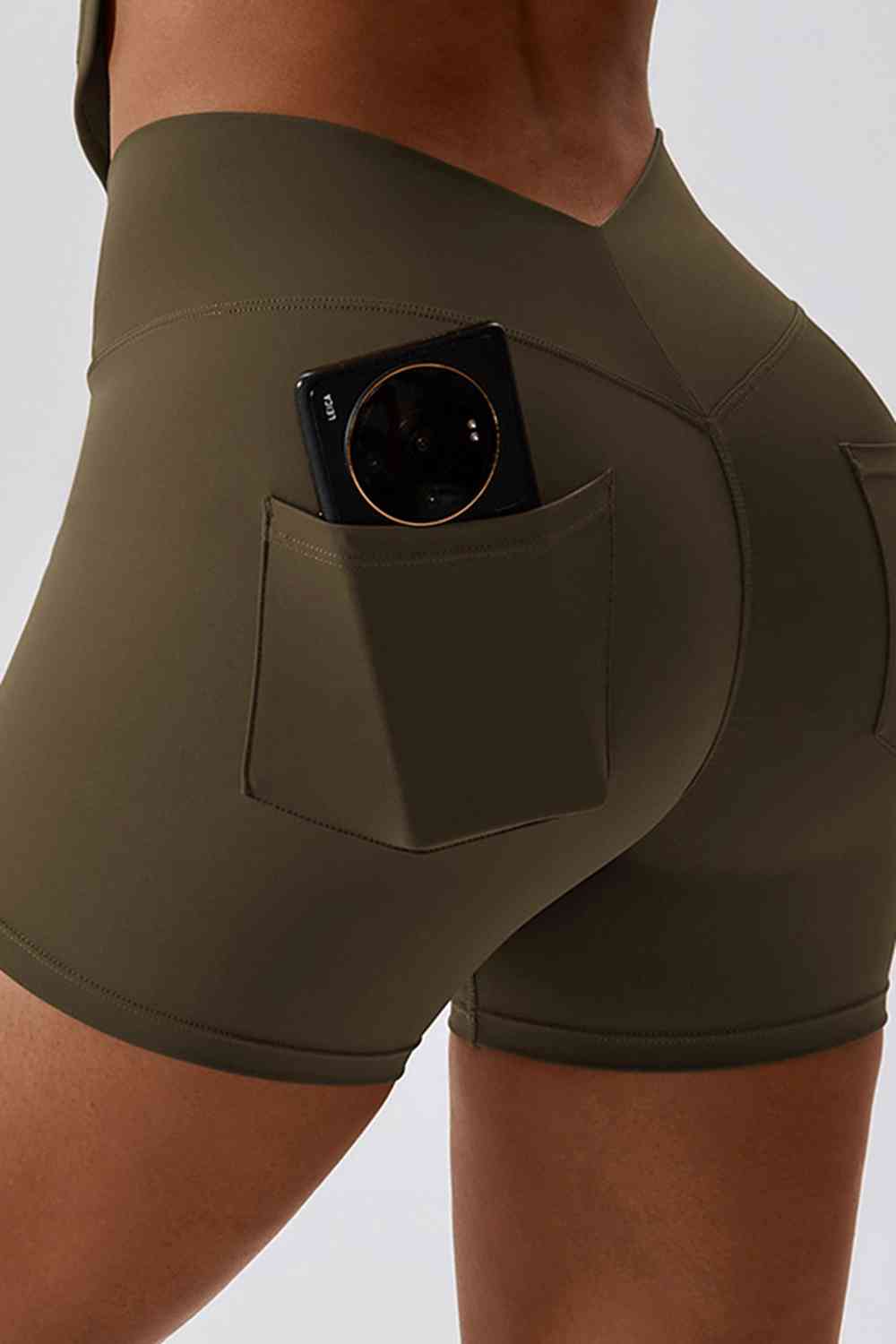 Wide Waistband Back Pocket Sports Shorts
